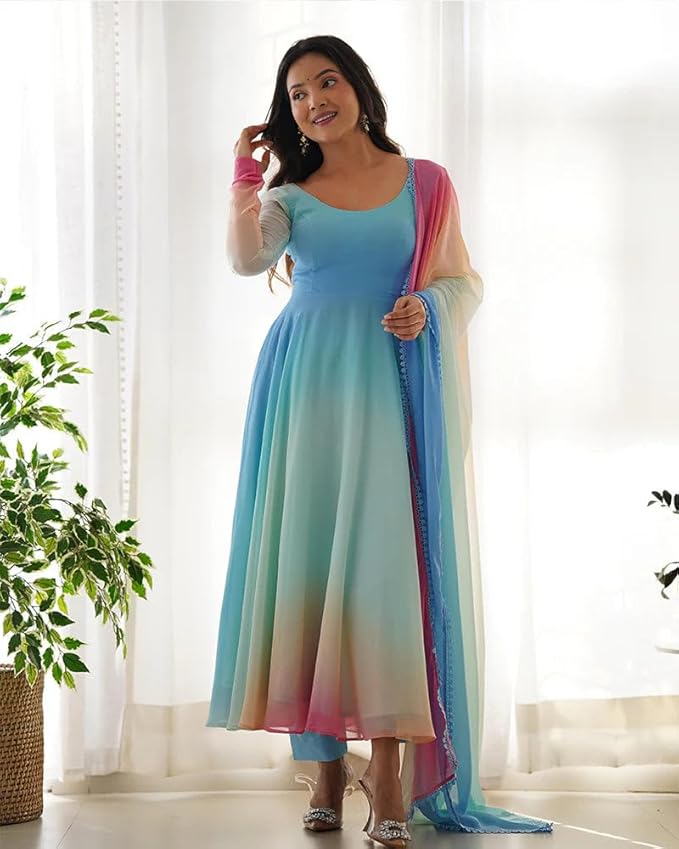 - 1. Premium Georgette Fabric: Crafted in lightweight and breathable georgette, this Anarkali kurta offers a comfortable yet elegant drape — ideal for long festive occasions.