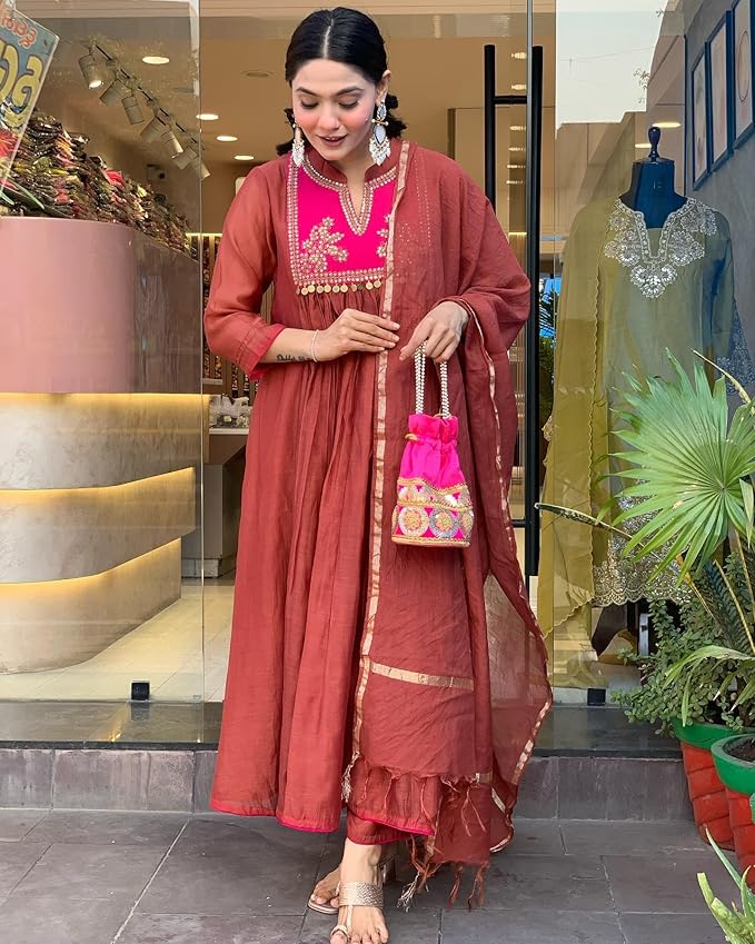 - Style: Anarkali || Length: Calf Length || Sleeves: 3/4 Sleeves || Size Chart- Kurta-S-36 in, M-38 in , L-40 in , XL-42 in , XXL-44 in,Pant :- S-28 in, M-30 in , L-32 in, XL- 34 in , XXL- 36 in,For More Please refer to the size Chart below.