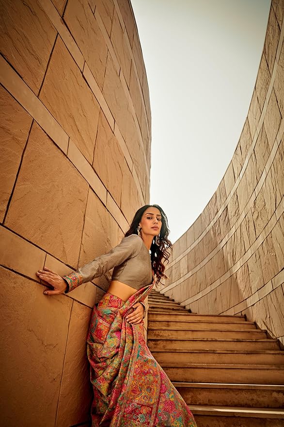 MADHUHANSH Kashmiri Cotton Patola Saree for Women | Cotton Saree | Sarees with Unstitched Blouse | Saree with Blouse Piece | Soft and Skin Friendly